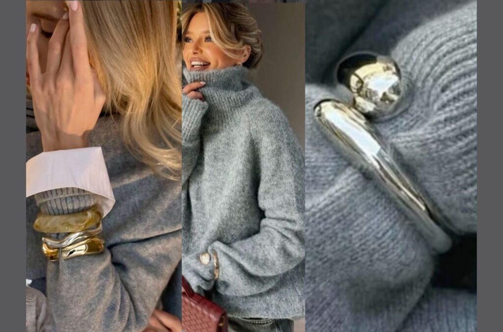 Δοκίμασε να φορέσεις ένα εντυπωσιακό βραχιόλι πάνω από το μανίκι του πουλόβερ σου.